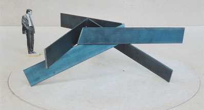 5 Skulpturen aus immer gleichen Stahlwinkeln im Verhältnis 105° zu 70°, Modellgröße |